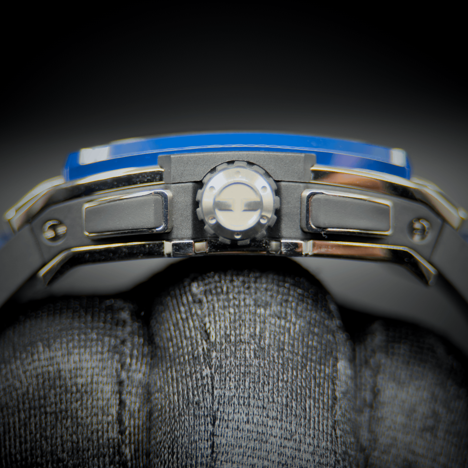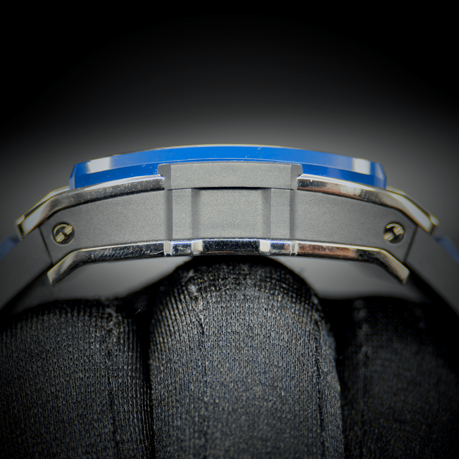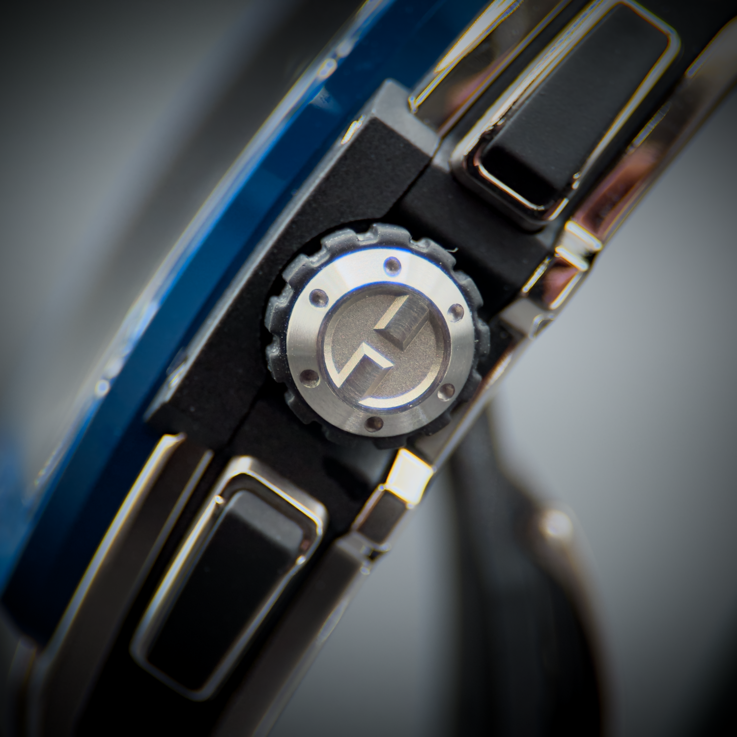 - Case: Brushed titanium case with polished finished beveled corners.