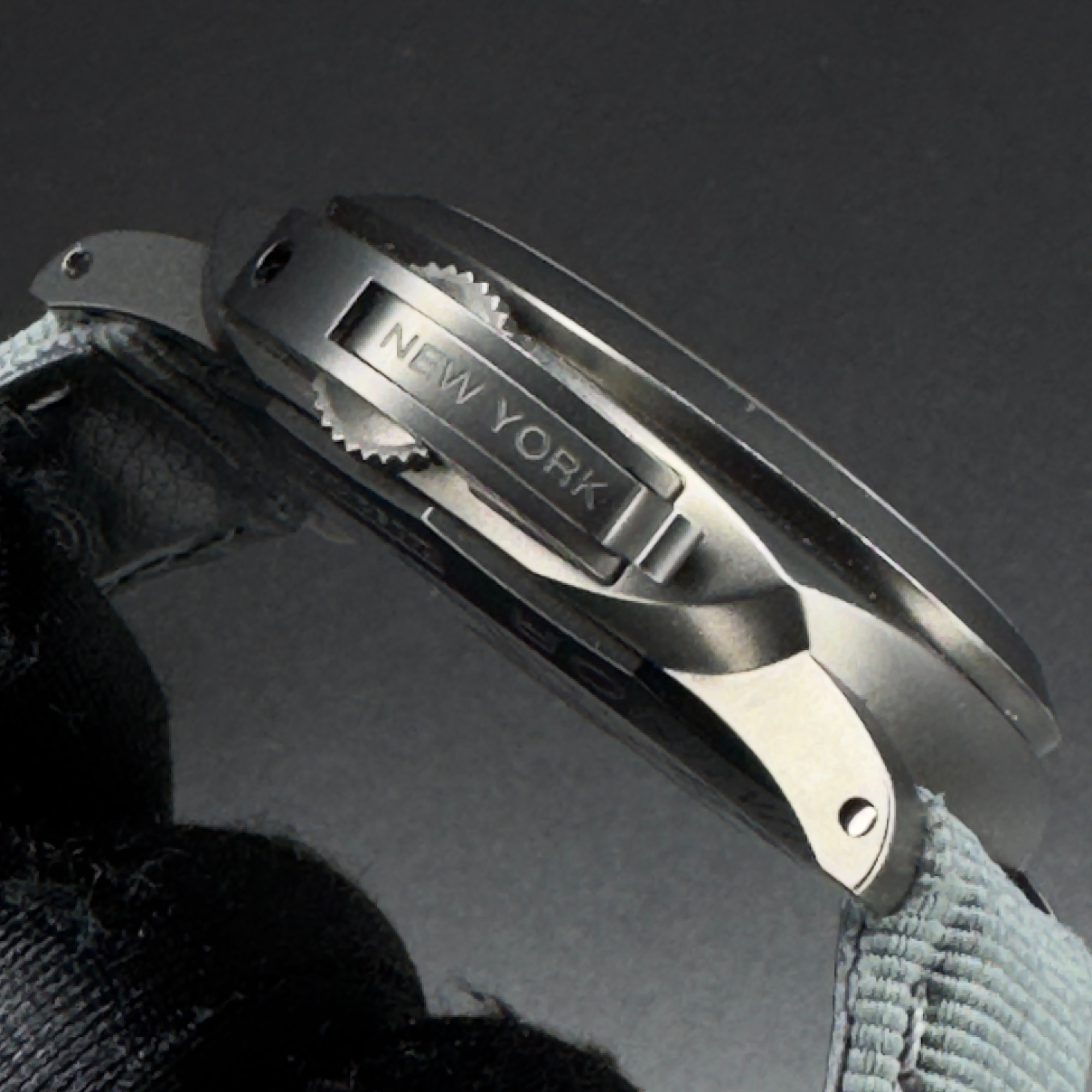 - Case: 44mm diameter, made of titanium with a DLC (Diamond-Like Carbon) coating for a sleek, rugged, grey/black finish. The case back showcases an engraving of the Brooklyn Bridge, a tribute to New York City.